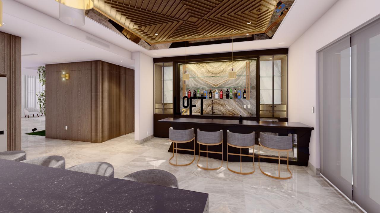 • Cocina equipada con cuarto de alacena y área de bar